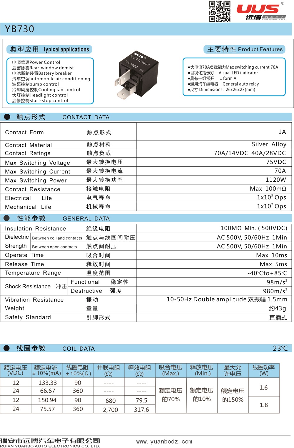 YB140继电器 Relay