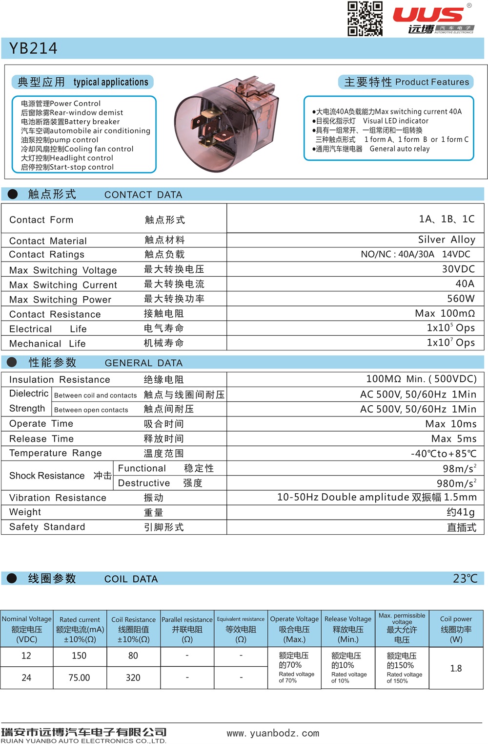 YB140继电器 Relay